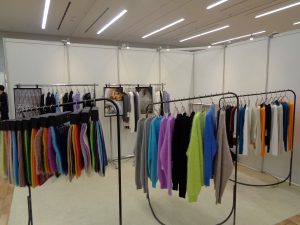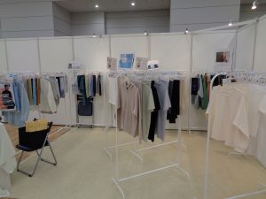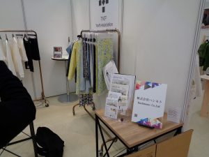 <出展企業(順不同 敬称略):㈱ピーコンポ・中橋莫大小㈱・㈱小倉メリヤス製造所・丸安毛糸㈱・㈱ズーム・㈱トコヨダ・㈱和興・㈱内田染工場・Sato-S2㈱・大石メリヤス㈱・㈲オフィスホドタ・佐藤莫大小㈱・㈱ハシモト・丸和繊維工業㈱・百瀬繊維㈱・安泰ニット㈱東京営業所>
