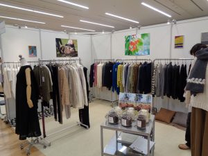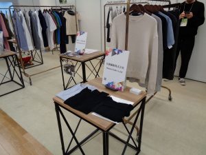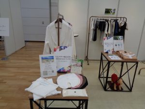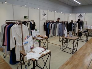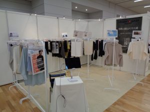 <出展企業(順不同 敬称略):㈱ピーコンポ・中橋莫大小㈱・㈱小倉メリヤス製造所・丸安毛糸㈱・㈱ズーム・㈱トコヨダ・㈱和興・㈱内田染工場・Sato-S2㈱・大石メリヤス㈱・㈲オフィスホドタ・佐藤莫大小㈱・㈱ハシモト・丸和繊維工業㈱・百瀬繊維㈱・安泰ニット㈱東京営業所>